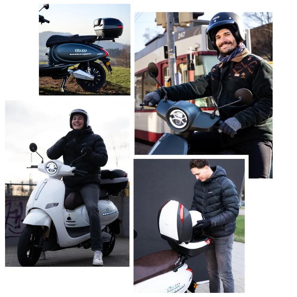 Alle unsere Roller haben standardmäßig ein Schlüssel freies Startsystem, Bluetooth-Lautsprecher, Tempomat, Alarmanlage, USB und vieles mehr!